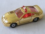 | Massstab | 1:60 |  durchsichtige Scheiben mit angedeuteten Targa-Dächer und rotem Rechtslenker-Interieur. Schwarze, vernietete Kunststoffbodenplatte. Aufgesetzter Heckspoiler und Rückspiegel in Wagenfarbe an der A-Säule angebracht. Zu öffnende Türen. Auf dem Dach eine rote, eckige Lichtbar. Weisse Kunststoffscheinwerfer. Chrom-4-Steg-Felgen mit Hartplastikräder. Fahrzeug aus der Tomica Gold-Chrom-Edition