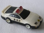 | Massstab | 1:60 |  schwarze, nicht durchsichtige Scheiben, Heckblende und angedeutete Targa-Dächer. Aufgesetzter Heckspoiler und Rückspiegel in Wagenfarbe an der A-Säule angebracht. Einsatzfahrzeug der Japanischen Polizei mit roter Lichtbar auf dem Dach und Hoheitszeichen in schwarz-gold auf der Motorhaube und den Seiten. Kolorierte Lichter. Weisse 5-Doppel-Steg-Felgen mit Weichgummi-Reifen. Fahrzeug für die H-0 Slot-Rennbahn, samt Motor