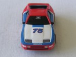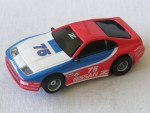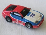 | Massstab | 1:60 |  schwarze, nicht durchsichtige Scheiben, B-Säule, Heckblende und Rückspiegel an der A-Säule angebracht. 3-Farben-Lackierung. Auf der weissen Motorhaube den grauen Aufdruck "Nissan" und die blau-rote Startnummer 75. Auf der Frontscheibe den weissen Aufdruck "Z". Auf den Seiten den weissen Aufdruck "Nissan Z" und die Startnummer 75 sowie Werbeaufdrucke. Dem 1995-er US-IMSA-GTS-Rennfahrzeug nachempfunden. Beleuchtete Scheinwerfer und kolorierte Rücklichter. Graue 5-Steg-Felgen mit Weichgummi-Reifen. Auto für die H-0 Slot-Rennbahn, samt Motor