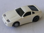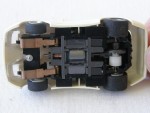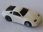 schwarze, nicht durchsichtige Scheiben. Rückspiegel in Wagenfarbe an der A-Säule angebracht. Unlackierte Karosserie. Beleuchtete Scheinwerfer. Silberne 5-Steg-Felgen mit Weichgummi-Reifen. Auto für die H-0 Slot-Rennbahn, samt Motor |