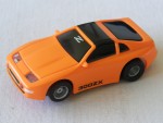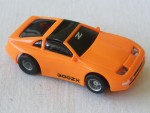 | Massstab | 1:60 |  schwarze, nicht durchsichtige Scheiben, Heckblende und angedeutete Targa-Dächer. Rückspiegel in Wagenfarbe an der A-Säule angebracht. Auf der Frontscheibe den weissen Aufdruck "Z". Auf den Seiten den schwarzen Aufdruck "300 ZX". Beleuchtete Scheinwerfer und kolorierte Rücklichter. Graue 5-Steg-Felgen mit Weichgummi-Reifen. Auto für die H-0 Slot-Rennbahn, samt Motor