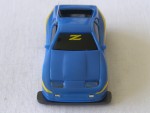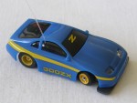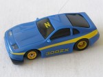 | Massstab | 1:60 |  schwarze, nicht durchsichtige Scheiben und eine Führungsplatte unter der Front. Rückspiegel in Wagenfarbe an der A-Säule angebracht. Auf der Frontscheibe den gelben Aufdruck "Z". Um das ganze Auto ein gelber Streifen. Auf den Seiten den gelben Aufdruck "300 ZX". Beleuchtete Scheinwerfer und kolorierte Rücklichter. Aus der rechten Seitenscheibe schaut eine farblose Antenne. Gelbe, lenkbare 5-Steg-Felgen mit Weichgummi-Reifen. Auto für die H-0 Slot-Rennbahn, samt Motor