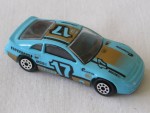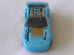 | Massstab | 1:60 |  durchsichtige Scheiben und angedeutete Targa-Dächer. Schwarzes Linkslenker-Interieur. Farblose, vernietete Metallbodenplatte. Aufgesetzter Heckspoiler in Wagenfarbe. Kunststoffkarosserie. Auf dem ganzen Auto gold-schwarze Streifen und die hellblau-schwarze Startnummer 17 und diverse Werbeaufdrucke. Chrom-8-Loch-Felgen mit Hartplastikräder. Identisches Modell siehe auch unter Majorette Super Crystal Serie