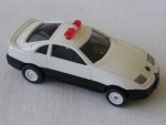 | Massstab | 1:58 |  schwarze, nicht durchsichtige Scheiben und angedeutete Targa-Dächer. Schwarze, verschraubte Kunststoffbodenplatte mit ein-aus-Schalter für den batteriebetriebenen Fahrbetrieb. Aufgesetzter Heckspoiler in Wagenfarbe und graue Kunststoffscheinwerfer, sowie kolorierte Rücklichter. Einsatzfahrzeug der Japanischen Polizei mit roter, runder Lichtbar auf dem Dach und golden-schwarze Hoheitszeichen auf der Motorhaube. Weisse 8-Loch-Felgen mit Profilgummi-Reifen. Fahrzeug aus der Motor-Tomica Serie, baugleich wie B/O Tomica