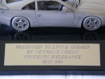 | Massstab | 1:43 |  detailiertes Modell aus massivem Zinn in 3-D ohne Scheiben und Farben, montiert auf Display-Sockel. Ein Präsent, anlässlich des Concours d'elegance des Z-Registers Grossbritanien, aus dem Jahrs 1994. Es wurde übergeben durch Lynne Godber. Rechtsgesteuerte England-Variante, limitiert auf 250 Stück insgesamt mit der Nummer 084. Die Serie wurde durch den Nissan-Dealer Newmans aus London, aufgelegt. Herzlichen Dank für diese persönliche Geschenk