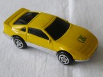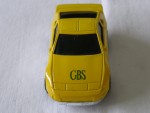 schwarze, nicht durchsichtige Scheiben mit angedeuteten Targa-Dächer. Rückspiegel und aufgesetzter Heckspoiler in Wagenfarbe an der A-Säule angebracht. Vernietete Chrom-Bodengruppe. Auf der Motorhaube den blauen Aufdruck "GBS". Chrom-5-Steg-Felgen mit Hartplastikräder. Einfaches Kinderspielzeug als Die-Cast |