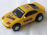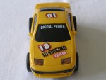 | Massstab | 1:43 |  schwarze, nicht durchsichtige Scheiben und angedeutete Targa-Dächer. Aufgesetzter Heckspoiler und Rückspiegel in Wagenfarbe an der A-Säule angebracht. Auf der Motorhaube ein weiss-gelb-rot-schwarzer Aufkleber mit dem Aufdruck "Hi-Racing Team" und die rot-schwarz-weisse Startnummer 18. Auf der Frontscheibe den schwarz-weissen Aufkleber mit dem Aufdruck "Special Power". Auf den Seiten den weiss-gelb-rot-schwarzen Aufkleber mit dem Aufdruck "Hi-Racing Team". Auf dem Dach die rot-schwarz-weisse Startnummer 18. Kolorierte Lichter. Weisse 8-Steg-Tiefbett-Felgen mit Weichgummi-Reifen. Fahrzeug für die Slot-Rennbahn, samt Motor