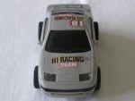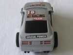 | Massstab | 1:43 |  schwarze, nicht durchsichtige Scheiben und angedeutete Targa-Dächer. Aufgesetzter Heckspoiler und Rückspiegel in Wagenfarbe an der A-Säule angebracht. Auf der Motorhaube ein weiss-gelb-rot-schwarzer Aufkleber mit dem Aufdruck "Hi-Racing Team" und die rot-schwarz-weisse Startnummer 18. Auf der Frontscheibe den schwarz-weissen Aufkleber mit dem Aufdruck "Special Power". Auf den Seiten den weiss-gelb-rot-schwarzen Aufkleber mit dem Aufdruck "Hi-Racing Team". Auf dem Dach die rot-schwarz-weisse Startnummer 18. Kolorierte Lichter. Weisse 8-Steg-Tiefbett-Felgen mit Weichgummi-Reifen. Fahrzeug für die Slot-Rennbahn, samt Motor. Bespielt und die Aufkleber sind nicht wie vorgesehen plaziert, aber komplett vorhanden