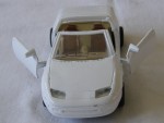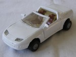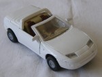 | Massstab | 1:36 |  durchsichtige Frontscheibe bei offenem Convertible mit weissem Überrollbügel und Persenning. Braun-cremefarbenem Linkslenker-Interieur. Zu öffnende Türen. Verschraubte, schwarze Kunststoffbodenplatte. Rückspiegel in Wagenfarbe an der A-Säule angebracht. Glasscheinwerfer und farblose Heckblende. Silberne 3-Steg-Felgen mit Gummi-Reifen und Pull-Back-Antrieb