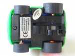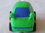 | Massstab | 1:38 |  blaue, nicht durchsichtige Scheiben und angedeutete Targa-Dächer. Einfaches Kunststoffauto mit verzerrter Karosserie. Blaue Frontstossstange und Heckblende. Übergrosse Rückspiegel in Wagenfarbe auf den Kotflügeln montiert, als Überrollbügel beim Überschlag. Auf den Seiten ein gelb-blau-roter Aufkleber, der die Funktion aufzeigt. Auf der Vorderachse orange 7-Steg-Felgen und auf der Hinterachse orange 5-Steg-Turbo-Felgen mit schwarzen Profilgummi-Reifen. Schwungrad-Antrieb mit Bügel in der Bodenplatte für die Überschlagfunktion. Kinderspielzeug