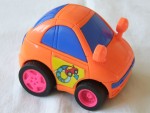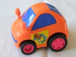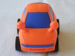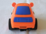| Massstab | 1:38 |  blaue, nicht durchsichtige Scheiben und angedeutete Targa-Dächer. Einfaches Kunststoffauto mit verzerrter Karosserie. Blaue Frontstossstange und Heckblende. Übergrosse Rückspiegel in Wagenfarbe auf den Kotflügeln montiert, als Überrollbügel beim Überschlag. Auf den Seiten ein gelb-blau-roter Aufkleber, der die Funktion aufzeigt. Auf der Vorderachse pinke 7-Steg-Felgen und auf der Hinterachse pinke 5-Steg-Turbo-Felgen mit schwarzen Profilgummi-Reifen. Schwungrad-Antrieb mit Bügel in der Bodenplatte für die Überschlagfunktion. Kinderspielzeug