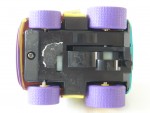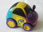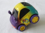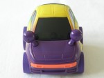 | Massstab | 1:38 |  schwarze, nicht durchsichtige Scheiben und angedeutete Targa-Dächer. Einfaches Kunststoffauto mit verzerrter Karosserie in fliessenden Farben. Pinke Frontstossstange und Heckblende. Übergrosse Rückspiegel in Wagenfarbe auf den Kotflügeln montiert, als Überrollbügel beim Überschlag. Auf den Seiten ein gelb-blau-roter Aufkleber, der die Funktion aufzeigt. Auf der Vorderachse gelbe 7-Steg-Felgen und auf der Hinterachse gelbe 5-Steg-Turbo-Felgen mit schwarzen Profilgummi-Reifen. Schwungrad-Antrieb mit Bügel in der Bodenplatte für die Überschlagfunktion. Kinderspielzeug