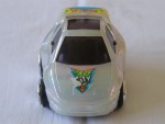 | Massstab | 1:36 |  schwarze, nicht durchsichtige Scheiben, inklusive Targa-Dächer. Einfaches Kunststoffauto mit verzerrter Karosserie in perlmutt-weiss. Aufgesetzter Heckspoiler in Wagenfarbe. Auf der Motorhaube den blau-weiss-grün-gelb-roten Aufkleber mit dem Aufdruck "City Fun". Auf dem Heckspoiler den gelb-blau-roten Aufkleber mit dem Aufdruck "Sparkling". Chrom-8-Steg-Felgen mit Gummi-Reifen und Schwungrad-Antrieb sowie mit Funkenflug im Innenraum, beim Betrieb. Kinderspielzeug