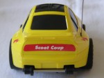 | Massstab | 1:36 |  schwarze, nicht durchsichtige Scheiben, inklusive Targa-Dächer. Einfaches Kunststoffauto mit verzerrter Karosserie. Aufgesetzter Heckspoiler in Wagenfarbe. Auf der Motorhaube die rot-weiss-schwarzen Aufkleber mit dem Aufdruck "Char-G" sowie 2 rote Blitze. Auf der Frontscheibe den schwarz-weissen Aufkleber mit dem Aufdruck "Char-G". Auf dem hinteren Kotflügel ein roter Blitzaufkleber. Batteriebetriebenes Fernsteuerauto mit Funkantenne hinten rechts aus dem Kotflügel ragend und Fernsteuermodul für vorwärts und rückwärts sowie Wheelyfunktion. Kolorierte Frontstossstange- und Lichter- sowie roter Heckblende-Aufkleber mit dem Aufdruck "Scoot Coupe". Weisse 8-Steg-Felgen mit Gummi-Reifen. Fahrzeug aus der Char-G Serie für grössere Kinder hier mit unterschiedlichem Decale-Set
