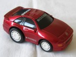 | Massstab | 1:34 |  schwarze, nicht durchsichtige Scheiben und angedeutete Targa-Dächer. Aufgesetzter Heckspoiler und Rückspiegel in Wagenfarbe an der A-Säule angebracht, mit verzerrter Karosserie. Schwarze Frontstossstange. Auf der Motorhaube, Front- und Heckscheibe sowie dem Heck weisse, teils konturierte Aufdrucke "300 ZX Nissan Z". Kolorierte Rücklichter. Weisse 12-Steg-Felgen mit Profilgummi-Reifen und Pull-Back-Antrieb. Fahrzeug in der Bauart wie die TTC-Serie