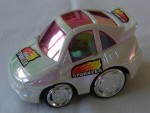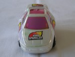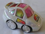 | Massstab | 1:36 |  brillantviolette, nicht durchsichtige Scheiben inklusive Targa-Dächer. Einfaches Kunststoffauto mit verzerrter Karosserie in perlmuttweiss. Aufgesetzter Heckspoiler in Wagenfarbe. Auf der Motorhaube, den Seiten und dem Heckspoiler weiss-schwarz-rot-gelbe Aufkleber mit dem Aufdruck "Euro Sparkler". Chrom-6-Steg-Turbo-Felgen mit Gummi-Reifen und Schwungrad-Antrieb sowie mit Funkenflug im Innenraum, beim Betrieb. Kinderspielzeug