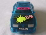 | Massstab | 1:20 |  bläuliche, durchsichtige Kunststoffkarosserie. Rückspiegel in Wagenfarbe an der A-Säule angebracht. Auf der Motorhaube ein schwarz-gelb-pink-weisser Aufkleber als Klecks und der Startnummer 89, sowie dem schwarz-weissen Aufdruck "Nissan". Auf der Frontscheibe ein pink-schwarzer Kleber mit der Aufschrift "300 ZX". Auf den Seiten schwarz-gelb-pink-weisse Aufkleber als Klecks und der Startnummmer 89 sowie Werbeaufdrucke. Am Heck ein Aufkleber als Heckleuchte und Heckblende. Silberne Scheinwerfer. Batteriebetriebenes R/C Modell der 27 MHz Konfiguration und Drahtloser Fernsteuerung. R/C Antenne ragt rechts aus dem Dach. Chrom-5-Steg-Felgen mit Gummi-Reifen und lenkbare Vorderräder