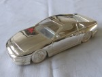 schweres Display-Model verchromt mit abhebbarem Dach. Darunter sind Mulden für Streichhölzer und Zigaretten. Früheres Präsent für verdiente Datsun/Nissan-Händler |