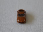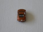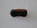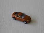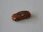 durchsichtige Scheiben, ohne Interieur, schwarze B-Säule, Scheibenrahmen und kolorierte Lichter. Aufgesetzte Seitenspiegel in Wagenfarbe an der A-Säule. Aus Kunststoff gefertigt aber detailiert für die kleine Grösse, wie silberne Original-6-Steg-Felgen mit schwarzen Hartplastikrädern