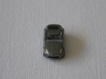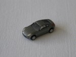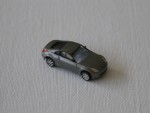 durchsichtige Scheiben, ohne Interieur, schwarze B-Säule, Scheibenrahmen und kolorierte Lichter. Aufgesetzte Seitenspiegel in Wagenfarbe an der A-Säule. Aus Kunststoff gefertigt aber detailiert für die kleine Grösse, wie silberne Original-6-Steg-Felgen mit schwarzen Hartplastikrädern