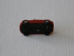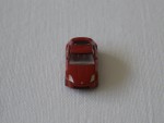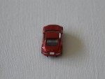 durchsichtige Scheiben, ohne Interieur, schwarze B-Säule, Scheibenrahmen und kolorierte Lichter. Aufgesetzte Seitenspiegel in Wagenfarbe an der A-Säule. Aus Kunststoff gefertigt aber detailiert für die kleine Grösse, wie silberne Original-6-Steg-Felgen mit schwarzen Hartplastikrädern