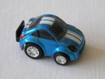 schwarze, nicht durchsichtige Scheiben. Zwei weisse Streifen über das ganze Auto. Auf der Heckplatte den weiss-schwarzen Aufdruck "Chibikko Choro-Q Fairlady Z no 9". Kolorierte Lichter. Chrom-8-Steg-Felgen mit Gummireifen und Pull-Back-Antrieb |