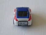 schwarze, nicht durchsichtige Scheiben. Dem Rennauto des Bob Sharp Racing-Teams nachemfunden mit der legendären Startnummer 33. Auf der Heckplatte den weiss-schwarzen Aufdruck "Chibikko Choro-Q Fairlady Z no 9". Kolorierte Lichter. Weisse 8-Steg-Felgen mit Gummireifen und Pull-Back-Antrieb |
