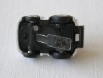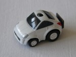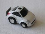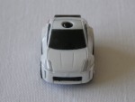 schwarze, nicht durchsichtige Scheiben. Empfänger auf dem Dach für für Fahrbetrieb. Auf der Heckplatte den weiss-schwarzen Aufdruck "Choro-Q Fairlady Z Mame Digi Serie". Kolorierte Lichter. Chrom-6-Steg-Felgen mit Gummireifen mit Batterie-Betrieb inaktiv