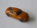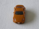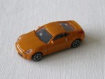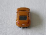 durchsichtige Scheiben, schwarzes Interieur, B-Säule, und Scheibenwischer. Aufgesetzte Seitenspiegel in Wagenfarbe an der A-Säule. Kolorierte Lichter. Gebauter Choco-Ü-Ei Bausatz aus Japan. Silberne 6-Steg-Felgen mit Hartplastikreifen