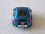 schwarze, nicht durchsichtige Scheiben und Kühlergrill. Auf der Heckplatte den Aufdruck in schwarz-weiss "Fairlady Z no 17". Kolorierte Lichter. Chrom-5-Steg-Felgen mit Gummireifen und Pull-Back-Antrieb |