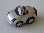 2-sitziges, offenes Convertible mit creme-schwarzem Interieur. Auf der Heckplatte den schwarz-gelb-weissen Aufdruck "Fairlady Z Roadster no 39". Kolorierte Lichter. Chrom-5-Steg-Felgen mit Gummireifen und Pull-Back-Antrieb