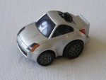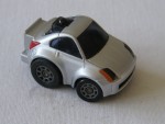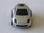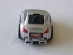 schwarze, nicht durchsichtige Scheiben und Empfänger auf dem Dach für für Fahrbetrieb im IR-Bereich, mit lenkbaren Vorderrädern. Auf der Heckplatte den schwarz-weiss-roten Aufdruck "Digi-QR Fairlady Z (Z 33) no 1". Koloriert Lichter. Graue 8-Steg-Felgen mit Gummireifen |