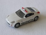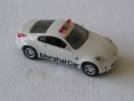 durchsichtige Scheiben, graues Interieur, schwarze Scheibenrahmen und B-Säule. Aufgesetzte Seitenspiegel in Wagenfarbe an der A-Säule, als Pace-Marshal-Car" mit roter Lichtbar auf dem Dach, einer Japanischen Rennstrecke. Kolorierte Lichter. Silberne Original-6-Steg-Felgen mit Profil-Gummireifen |
