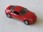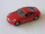 durchsichtige Scheiben, schwarzes Interieur und B-Säule. Aufgesetzte Seitenspiegel in Wagenfarbe an der A-Säule. Auf den Seiten in Gold der Aufdruck "Nissan". Kolorierte Lichter. Sehr detailgetreu. Silberne 6-Steg-Felgen mit Profilgummireifen |