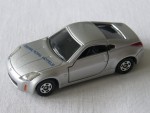 schwarzes Interieur, Türen zum öffnen, mit Chromscheinwerfern, blauer Aufdruck "Daiwa Royal Hotels" auf der Motorhaube. Tomica Standartchromräder