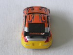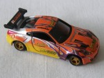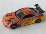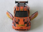 schwarzes Interieur, Türen zum öffnen, mit diversen Werbeaufkleber und schwarzem Heckspoiler. Goldene 4-Stegfelgen