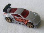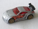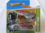 rötliche, durchsichtige Scheiben und rotes Rechtslenker Interieur. Schwarze, vernietete Kunststoffbodenplatte mit rotem HW-Flügel. Schwarzer, aufgesetzter Heckspoiler und Frontspoiler in Wagenfarbe. Auf der Motorhaube angedeutete Kühlöffnungen. Auf den Seiten orange-schwarz-rote Flammenmuster und diverse Werbeaufdrucke. Kolorierte Rückleuchten. Goldchrom-5-Doppel-Steg-Felgen mit Goldchrom-Zierring und Hartplastikräder. Fahrzeug aus der Heat Fleet Serie
