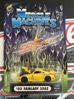durchsichtige Scheiben, gelb-schwarzes Linkslenker-Interieur mit Audio- und Lachgasanlage im Kofferraum. Silberne Türgriffe. Aufgesetzter Heckspoiler mit schwarzem Aufdruck "Muscle Machines" und Rückspiegel in Wagenfarbe an der A-Säule angebracht. Zu öffnende Motorhaube mit Motorapplikation. Auf der Frontscheibe der schwarz-rote Aufdruck "SS Tuner". Auf der Motorhaube den schwarzen Aufdruck "GReddy". Auf den Seiten diverse Werbeaufdrucke. Auf der Heckscheibe den weissen Aufdruck "Polk-Audio". Schwarze, verschraubte und detaillierte Bodenplatte. Kolorierte Lichter. Schwarze 6-Steg-Felgen mit rotem Zierring und Profilgummi-Reifen. Fahrzeug aus der SS Tuner Serie als Driftauto