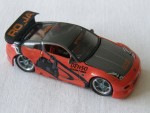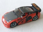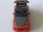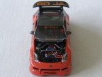 orange-schwarzes Interieur, Audioanlage im Kofferraum, schwarze Streifen auf den Seiten und Kerzenkopf mit dem Aufdruck "Denso". Grosser, schwarzer Heckspoiler mit Aufdruck in orange "RO_JA". Chromfelgen mit hellblauer 5-Steginnenseite und Gummireifen. Driftfahrzeug |