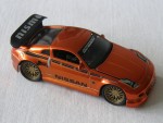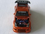 schwarz-oranges Interieur, Audioanlage im Kofferrauf, feiner schwarzer Streifen auf den Seiten mit dem Aufdruck "NISMO" auf dem schwarzen Heckspoiler. Goldene Felgen im BBS Designe mit Gummiriefen. Driftauto |
