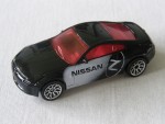 rötliche Scheiben und rotes Interieur, Airbrushmalerei in weiss auf den Seiten und dem Aufdruck "NISSAN Z" auf den Seiten. Chromfelgen in BBS-Designe. Chrombodenplatte |