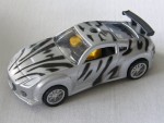 gelb-schwarzes Interieur, schwarze Airbrushmalereien über das ganze Auto und mit grossem schwarzem Heckspoiler. Chromfelgen mit Sternmuster und Gummireifen