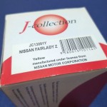 durchsichtige Scheiben, schwarzes Rechtslenker-Interieur, Scheibenrahmen, Scheibenwischer und Kühlergrill. Silberne Türgriffe und Domstrebe. Rückspiegel in Wagenfarbe an der A-Säule angebracht. Eingesetzte Lichter. Silberne 6-Steg-Felgen mit Profilgummi-Reifen. Fahrzeug zum Restart der Typenreihe Fairlady 2002