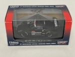 Durchsichtige Scheiben, schwarzes Rechtslenker-Renn-Interieur mit Überrollkäfig, aufgesetztem Heckspoiler mit weissem Aufdruck "Nissan", Schweller, Kühlergrill, Scheibenwischer und Rückspiegel an der A-Säule angebracht. Ohne Heckscheibe. Auf der Frontscheibe den weissen Sonnenschutz mit rot-schwarzem Aufdruck "Nismo Nissan". Silberne Türgriffe und Funkantenne auf dem Dach. Dem 2004-er Testfahrzeug zur Japanischen Super GT 500 Meisterschaft, mit diversen Werbeaufdrucken und der weiss-rot-schwarzen Startnummer 023. Kolorierte Lichter. Schwarze 5-Steg-Felgen mit Renngummi-Reifen. Fahrzeug aus der offiziellen Autobacs GT Association Modellauto Serie mit einer weltweiten Limitation von 2'400 Stück