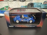 Durchsichtige Scheiben, schwarzes Rechtslenker-Renn-Interieur mit Überrollkäfig, aufgesetztem Heckspoiler mit weissem Aufdruck "Calsonic", Schweller, Spoilerlippe vorne und hinten, Kühlergrill, Scheibenwischer und Rückspiegel an der A-Säule angebracht. Ohne Heckscheibe. Auf der Frontscheibe den orange-weissen Sonnenschutz mit blau-rot-schwarzem Aufdruck "Calsonic Super GT". Silberne Türgriffe und Funkantenne auf dem Dach. Dem 2005-er Rennfahrzeug der Japanischen Super GT 500 Meisterschaft, des Calsonic Teams nachempfunden, mit diversen Werbeaufdrucken und der weiss-rot-schwarzen Startnummer 12. Glasscheinwerfer und koloriert Rücklichter. Weisse 5-Steg-Felgen mit Renngummi-Reifen. Fahrzeug aus der offiziellen Autobacs GT Association Modellauto Serie