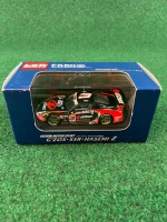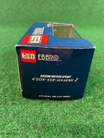 Durchsichtige Scheiben, schwarzes Rechtslenker-Renn-Interieur mit Überrollkäfig, aufgesetztem Heckspoiler mit weiss-rotem Aufdruck "G'ZOX", Schweller, Kühlergrill, Scheibenwischer und Rückspiegel an der A-Säule angebracht. Ohne Heckscheibe. 2-Farben-Karosserie. Auf der Frontscheibe den weiss-roten Sonnenschutz mit schwarzem Aufdruck "G'ZOX". Silberne Türgriffe und Funkantenne auf dem Dach. Dem 2004-er Rennfahrzeug der Japanischen Super GT Meisterschaft, des G'ZOX SSR Hasemi Teams nachempfunden, mit diversen Werbeaufdrucken und der weiss-rot-schwarzen Startnummer 3. Kolorierte Lichter. Goldene 6-Steg-Felgen mit Renngummi-Reifen. Fahrzeug als lizenzierter Fanartikel in Zusammenarbeit mit TOMY und dem Team