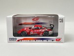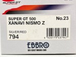 durchsichtige Scheiben, schwarzes Rechtslenker-Renn-Interieur mit Überrollkäfig, aufgesetztem Heckspoiler mit weissem Aufdruck "Nissan", Schweller, Spoilerlippen vorne und hinten, Kühlergrill, Scheibenwischer und Rückspiegel an der A-Säule angebracht. Spoilerlippen hinter den Vorderrädern in Wagenfarbe. Rote Lufthutze auf dem Dach. Ohne Heckscheibe. 2-Farben-Karosserie. Auf der Frontscheibe den schwarz-weissen Sonnenschutz mit weiss-schwarz-rotem Aufdruck "Nismo Nissan Super GT". Silberne Türgriffe und Funkantenne auf dem Dach. Dem 2006-er Rennfahrzeug der Japanischen Super GT 500 Meisterschaft, des Xanavi Teams nachempfunden, mit diversen Werbeaufdrucken und der weiss-rot-schwarzen Startnummer 23. Glasscheinwerfer und koloriert Rücklichter. Schwarze 6-Steg-Felgen mit Renngummi-Reifen. Fahrzeug aus der offiziellen Autobacs GT Association Modellauto Serie