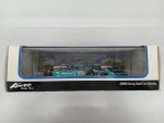 Fahrzeug 2 von 2. Durchsichtige Scheiben, schwarzes Rechtslenker-Renninterieur mit Überrollkäfig, aufgesetztem Heckspoiler mit weiss-rotem Aufdruck "Advan", Schweller, Kühlergrill, Scheibenwischer und Rückspiegel an der A-Säule angebracht. Ohne Heckscheibe. 3-Farben-Karosserie. Auf der Frontscheibe den weissen Sonnenschutz mit rot-schwarzem Aufdruck "G-Super-GT". Silberne Türgriffe und Funkantenne auf dem Dach. Einem 2006-er Rennfahrzeug der Japanischen Super GT Meisterschaft, des Woodone-Advan-Clarion-Teams nachempfunden mit diversen Werbeaufdrucken und der weiss-rot-schwarzen Startnummer 24. Kolorierte Lichter. Schwarze 6-Steg-Felgen mit Renngummi-Reifen. Fahrzeug aus der Kondo Racing Car Collection, zusammen mit einem zweiten Z 33 als Special Edtion, separat aufgelistet aber untrennbar auf Display-Sockel