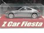 schwarze, nicht durchsichtige Scheiben und Kühlergrill. Aufgesetzter Heckspoiler und Rückspiegel an der A-Säule angebracht in Wagenfarbe. Schwarze, verschraubte Bodenplatte mit Lautsprecher und Batteriefach für Motorensound. Kolorierte Lichter. Silberne 5-Steg-Felgen mit Profilgummi-Reifen. Fahrzeug aus der Z Car Fiesta Serie für Japan |