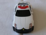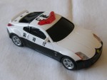 schwarze, nicht durchsichtige Scheiben, kolorierte Lichter und silberne 5-Steg-Felgen mit Profil-Gummireifen. Polizeifahrzeug mit Hoheitszeichen und roter Lichtbar auf dem Dach, sowie der Nr. 3. Batteriebetrieb für Motorensound in der Bodengruppe |